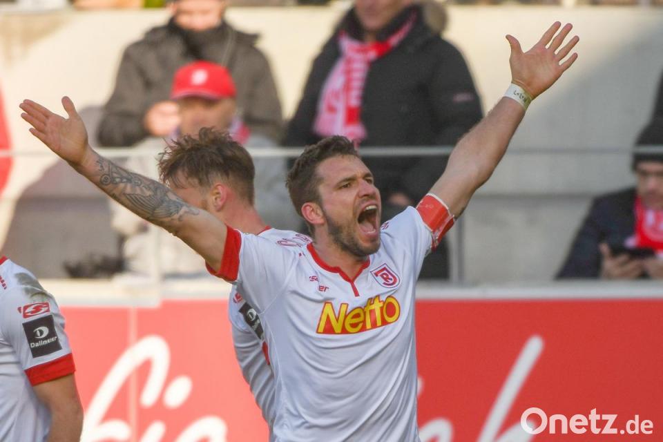 So gelang ihm auch sein Tor zum Ausgleich in der 74. Spielminute, der den siegbringenden Jahn-Sturmlauf einleitete, der durch Marco Grüttners Siegtreffer sieben Minuten später seine Krönung erfuhr. Schon beim 5:0 im Hinspiel schockte Adamyan die Hamburger mit einem Dreierpack. "Wenn mir vor der Saison jemand erzählt hätte, dass mir vier Tore gegen den HSV gelingen, den hätte ich gefragt, ob er blöd ist", feixte der Hamburg-Schreck in den Katakomben der Continental-Arena. Doch seine persönliche Bilanz rückte der 25-Jährige schnell wieder in den Hintergrund. "Wichtiger als mein Tor sind die drei Punkte, die wir hier in Regensburg behalten konnten", übte sich der neunfache Saison-Torschütze sogleich wieder in Understatement. Da sang er das gleiche Lied wie Kapitän Grüttner, der mit seinem ebenfalls neunten Saisontreffer zum 2:1 den HSV final erledigte. "Wir haben jetzt 33 Punkte, das reicht noch nicht zum Klassenerhalt. Wir brauchen noch mindestens sieben Zähler." Das erscheint bei noch elf ausstehenden Partien durchaus machbar.