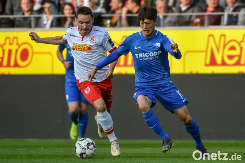 Der SSV Jahn legte zu Beginn ein Höllentempo vor - man ist fast geneigt zu sagen: wie gewohnt. Frühes Pressing, aggressives Anlaufen des gegnerischen Ballführers, geschlossenes Ausschwärmen im Kollektiv: Die Gäste aus dem Ruhrpott hatten mit dem typischen Fußball Beierlorzer Art in der ersten Viertelstunde ihre liebe Müh' und Not. Schon nach drei Minute köpfte Jann George eine mustergültige Hereingabe von Sebastian Stolze von der rechten Seite an den Pfosten. VfL-Keeper Manuel Riemann hätte bei diesem Kopfball-Torpedo nicht den Hauch einer Abwehrchance gehabt. Stolze mit einem Kopfball über den Bochumer Kasten (14.) und Maximilian Thalhammer, der eine Stolze-Rückgabe aus 16 Metern freistehend über den Querbalken setzte (19.), verpassten zudem einen Treffer für den SSV Jahn. Die Führung der Heimelf wäre längst verdient gewesen und lag förmlich in der Luft.