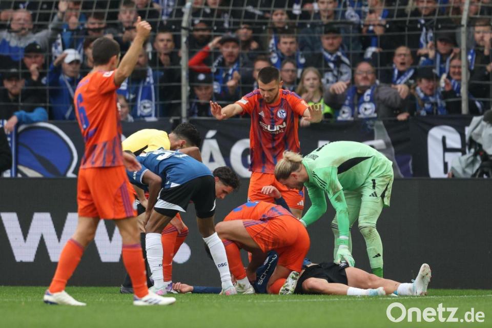 „Wir von Schalke hoffen, dass der Junge okay ist“, ergänzte der Coach in Richtung Grodowski. In der 69. Minute war Schalke-Keeper Karius mit beiden Fäusten zum Ball gegangen und hatte Grodowski dabei mit der linken Hand getroffen. Der Bielefelder Angreifer ging sofort zu Boden und blieb regungslos und mit ausgestreckten Armen liegen.