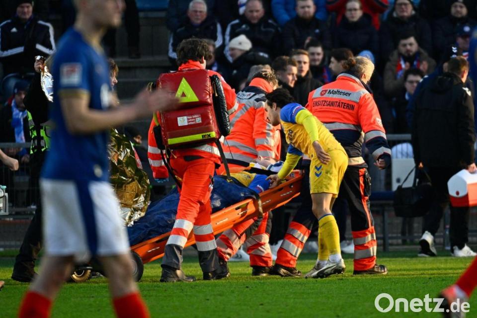 Eine schwerwiegende Verletzung hat den Sieg von Holstein Kiel in der 2. Fußball-Bundesliga gegen den SC Paderborn überschattet. Bei einer Flanke nach etwa 88 Minuten kam Paderborns Calvin Brackelmann in einem Luftduell mit dem Nacken denkbar unglücklich auf dem Boden auf und blieb benommen liegen.