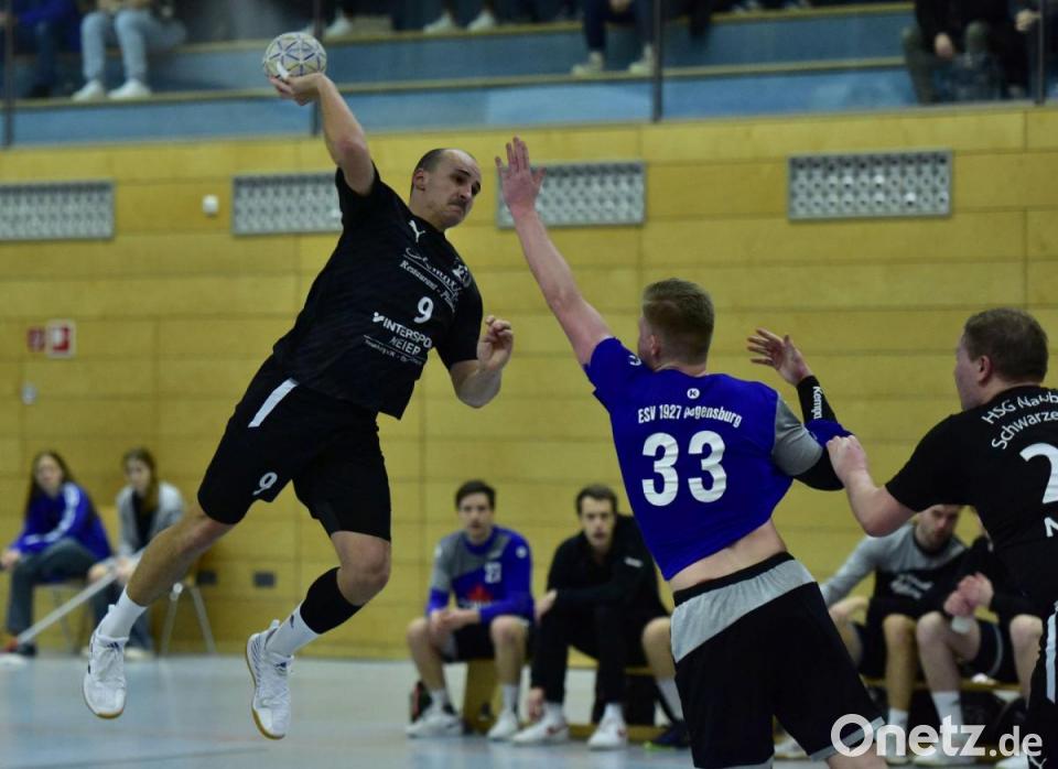 Die Handballer der HSG Nabburg/Schwarzenfeld lieferten am Samstag dem BOL-Spitzenreiter SG Regensburg im Sportpark einen beherzten Kampf, verloren am Ende aber mit 25:27. In den ersten 15 Minuten war es ein Spiel auf absoluter Augenhöhe, nach dem Zwischenstand von 8:7 für die Gäste zogen diese jedoch bis zur Pause auf 15:10 davon. Trainer Daniel Duscher lobte zur Pause das Engagement seines Teams, er forderte jedoch mehr Konzentration und Qualität im Abschluss, um den Domstädtern im zweiten Durchgang noch gefährlich werden zu können.
