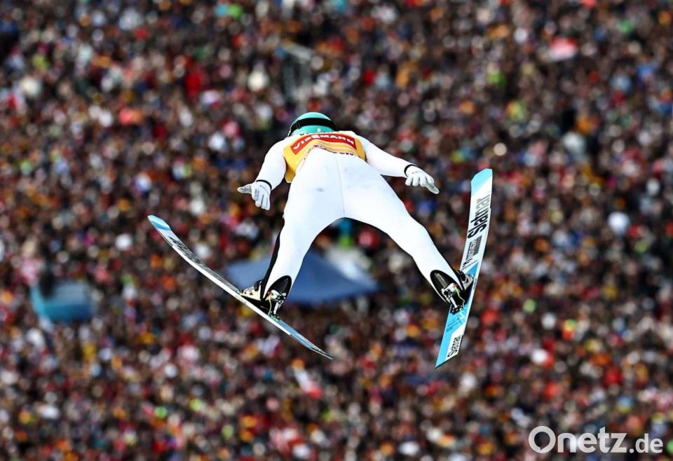 Im Auslauf der Großen Olympiaschanze verneigte sich der Mann im Gelben Trikot vor den 22.000 Fans im ausverkauften Stadion. Es sind Skisprung-Festtage für Prevc und seine Fans. Ein Plakat im Zuschauerbereich stand symbolisch für die bisherige Dominanz des 26-Jährigen: „Domen Prevc - der schlimmste Albtraum der Schwerkraft“.