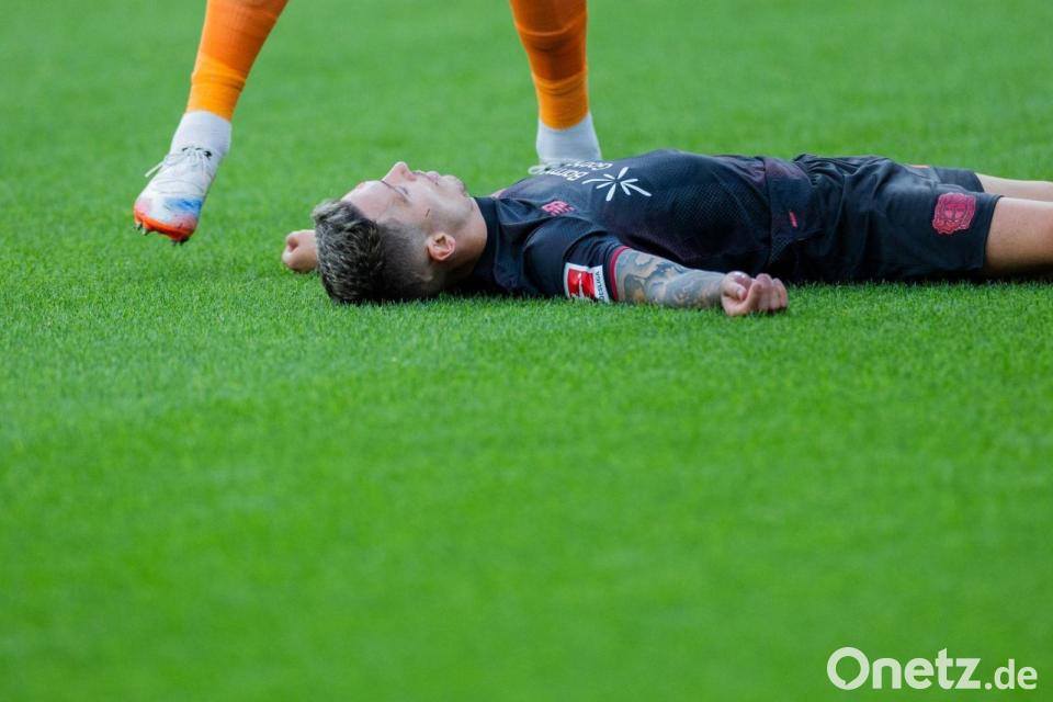 Die Sorge um Spielmacher Alejandro Grimaldo hat den verdienten Heimsieg von Bayer Leverkusen überschattet. Beim 2:0 (1:0) gegen Union Berlin prallte der Spanier kurz vor der Pause im Strafraum unglücklich mit seinem eigenen Mitspieler Christian Kofane zusammen, blutete am Kopf und musste benommen mit einer Trage vom Platz gebracht werden.