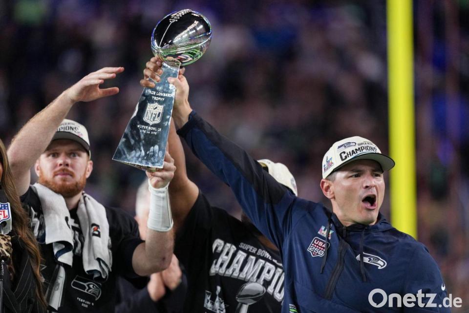 Im Moment des großen Triumphs schob Quarterback Sam Darnold die Scheinwerfer möglichst rasch von sich weg. Mit der Super-Bowl-Trophäe in der Hand richtete der Spielmacher einen Appell an die Fans seiner Seattle Seahawks. „Hey, macht mal Lärm für unsere Verteidigung.“ Und auch Trainer Mike MacDonald wollte keinesfalls alleine im Rampenlicht stehen und reckte den silbernen Pokal nur gemeinsam mit seinen wichtigsten Spielern im Konfettiregen nach oben.