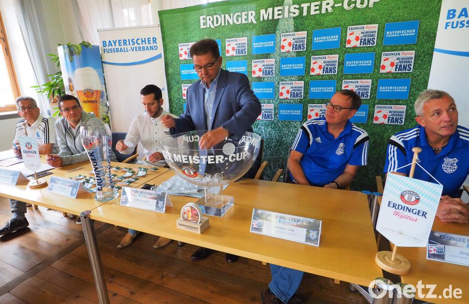Gespielt wird in Rosenberg auf Kleinfeld jeweils 1x 15 Minuten, weswegen "der Spaßfaktor im Vordergrund steht", erklärt Wolfram. Die Teilnehmer müssen keinen Spielerpass besitzen, sondern nur Mitglied des jeweiligen Vereins sein. Der TuS Rosenberg stellt für das Bezirksturnier fünf Kleinfeldplätze zur Verfügung. Zweiter Vorsitzender Manfred Seitz freut sich, dass der Name seines Traditionsvereins mal wieder "nach außen" getragen wird - denn der TuS spielt "nur" in der Kreisliga. "Da sind solche Veranstaltungen äußerst wichtig." Im Vorfeld des Turniers zog Alfred Tischler, der Kulturamtsleiter der Stadt Sulzbach-Rosenberg, am Dienstag im Rathaus aus einem großen Lostopf die Namen der Mannschaften für die Gruppeneinteilung.