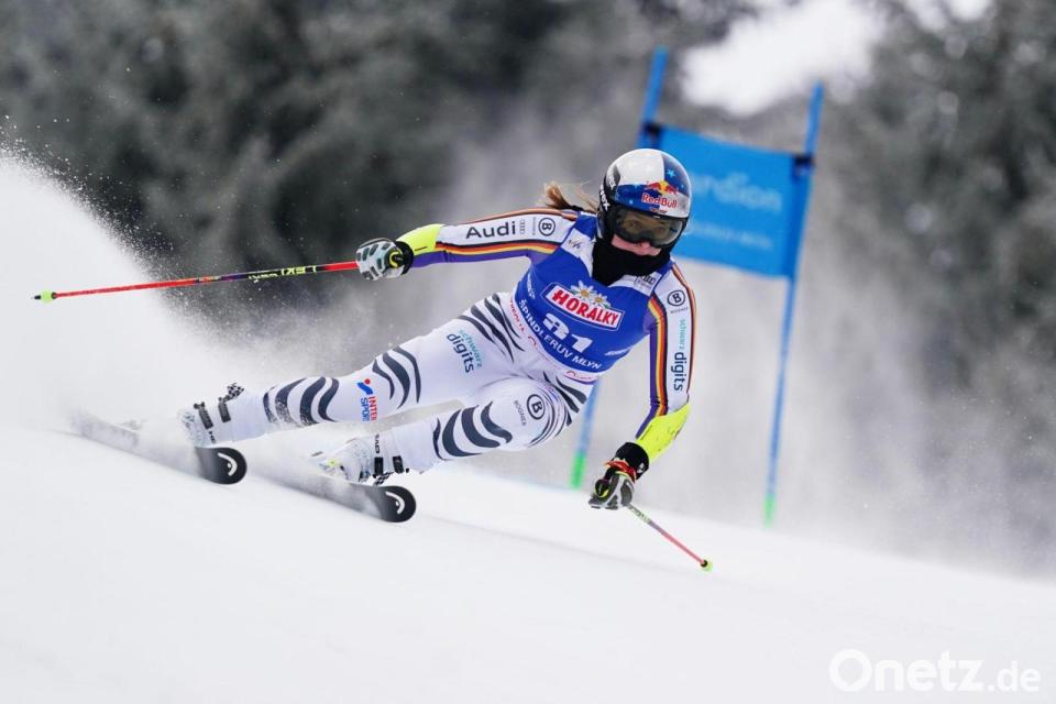 Die deutsche Skirennfahrerin Emma Aicher hat kurz vor Olympia ihre gute Form bestätigt. Im Riesenslalom von Spindlermühle kam die 22-Jährige auf Platz zehn und feierte den ersten Top-Ten-Platz in ihrer schwächsten Disziplin. In diesem Winter hatte Aicher schon eine Abfahrt und einen Super-G gewonnen und war im Slalom zweimal auf Rang drei gekommen.