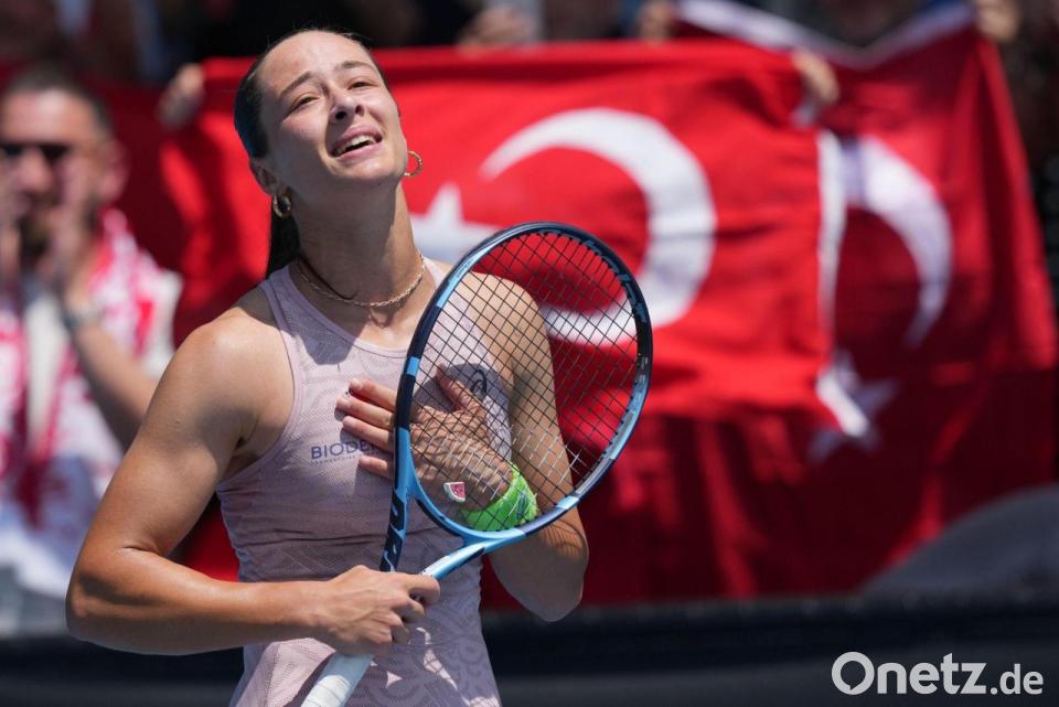 Direkt nach Öffnung der Tore zur Anlage im Melbourne Park hatten ihre Landsleute am Morgen den Court 7 bevölkert. Wo man auch hinschaute, waren türkische Flaggen zu sehen. „So etwas habe ich noch nie erlebt“, sagte Sonmez nach ihrem 6:2, 6:4 gegen die Ungarin Anna Bondar. „Sie haben mir sehr geholfen. Ich weiß, dass auch in der Türkei viele zugeschaut haben, obwohl es da drei Uhr in der Nacht war.“