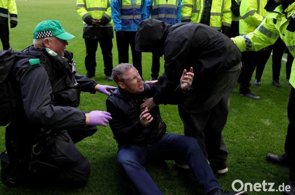 Erst seien Gäste-Fans von Celtic auf den Rasen gelaufen, dann hätten dies Anhänger der gastgebenden Rangers getan, wie der britische Sender BBC berichtete. Es seien Gegenstände geworfen worden, die Polizei sei eingeschritten. Angaben zu möglichen Verletzten und Festnahmen gab es zunächst nicht. Der schottische Fußball-Verband FA kündigte eine Untersuchung an und verurteilte die Zwischenfälle. Beide Clubs wollten sich laut BBC zunächst nicht offiziell äußern.