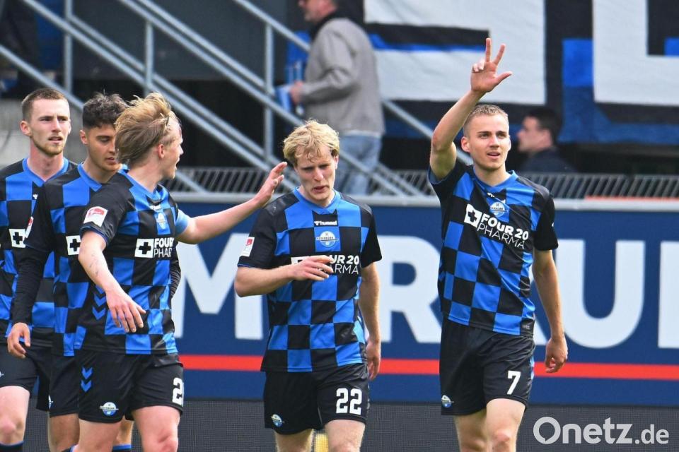 Der SC Paderborn hat die kleine Erfolgsserie des abstiegsbedrohten 1. FC Magdeburg beendet und den zweiten Platz der 2. Fußball-Bundesliga verteidigt. Die Ostwestfalen siegten dank Vierfach-Torschütze Filip Bilbija (19. Minute/29./45.+3/78.) mit 4:3 (3:2) und sind weiterhin erster Verfolger des FC Schalke 04. Magdeburg, das zuvor dreimal nacheinander nicht verloren hatte, war durch Lubambo Musonda (25.), Mateusz Zukowski (38.) und Laurin Ulrich (59.) dreimal zum Ausgleich gekommen.