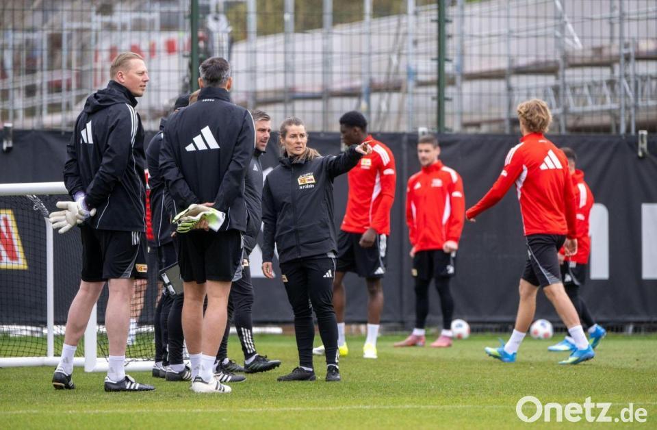Gut gelaunt und mit einem breiten Grinsen erschien Marie-Louise Eta um 10.56 Uhr zu ihrem ersten Training als Cheftrainerin des 1. FC Union Berlin. „Ey Jungs, kommt zusammen“, waren die ersten Worte der 34-Jährigen, bevor sie ihre Bundesliga-Schützlinge um Punkt 11.00 Uhr zu einer kurzen, aber deutlichen Ansprache zusammentrommelte - bloß keine Zeit verlieren im Abstiegskampf.