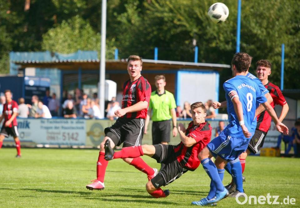 Eine dramatische Partie sahen die zahlreichen Zuschauer am Sonntag in Vohenstrauß. Mit einem Tor in der letzten Minute der Nachspielzeit entführte der Spitzenreiter glücklich die Punkte. Die auf gutem Niveau stehende Partie begann zunächst verhalten. Beide Abwehrreihen standen sicher, der Heimelf gelang es, die beste Offensive der Liga in Schach zu halten. So blieben klare Möglichkeiten in den ersten 30 Minuten Mangelware. In der Schlussphase der ersten Hälfe vergaben beide Teams die Chance zur Führung, als Jonas Fritsch auf Seiten der Gastgeber eine flache Bergmann-Hereingabe aus acht Metern über das Tor schoss und Brendel für Pfreimd ebenfalls aus kurzer Distanz am gut aufgelegten TW Kummer scheiterte. So ging es torlos in die Kabinen. Nach dem Seitenwechsel nahm das Spiel deutlich an Fahrt auf. Beide Teams agierten nun wesentlich offensiver. Zunächst waren die Gäste dabei optisch überlegen, ab Mitte der zweiten Hälfte nahm die Heimelf das Zepter zunehmend in die Hand und drängte auf die Führung. Beste Chancen durch Pfab und vor allem Ertl, der den Torwart bereits umspielt hatte und dann aus kurzer Distanz am Pfosten scheiterte, blieben allerdings ungenutzt. Pfreimd versteckte sich keineswegs und lauerte auf seine Chance. In der Nachspielzeit waren die Gäste nochmals am Drücker. Zunächst verfehlte ein Dropkick von Herzog das Tor knapp, in letzter Sekunde verpasste es Vohenstrauß, den Ball zu klären und Mischinger gelang sehenswert per Schlenzer in den Torwinkel der Lucky Punch.