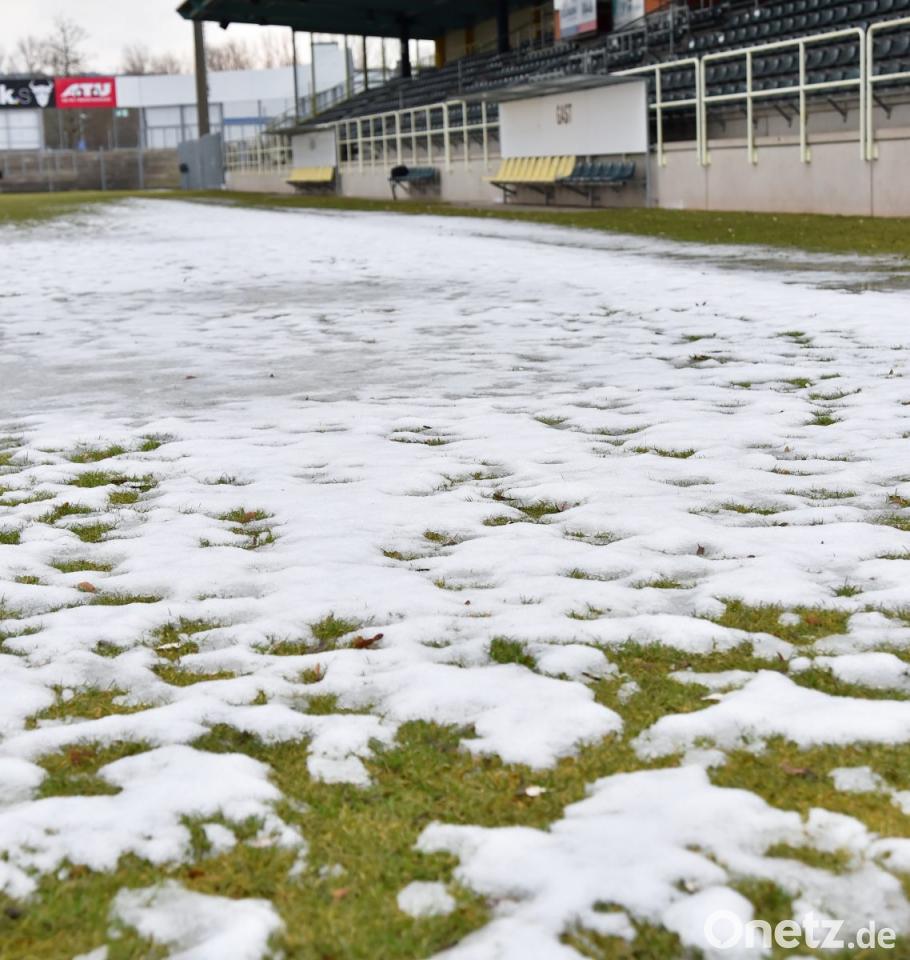 So gut wie kein Niederschlag, Plustemperaturen tagsüber - das Winterwetter schlug in den vergangenen Tagen keine Kapriolen. Brauchbare Voraussetzungen also für ein Fußballspiel, so schien es. "Dreiviertel des Rasens ist auch tiptop. Da könnten wir sofort spielen", erklärte Kurz. Schuld an der Absage seien jedoch die Platzverhältnisse auf dem Rest des Spielfeldes. In einem breiten Streifen vor der Tribüne, dort, wo den gesamten Tag kein Sonnenstrahl hinkommt, ist der Rasen laut Kurz mehrere Zentimeter tief gefroren. "Da liegt noch Eis und Schnee. Da kannst du Schlittschuhlaufen", berichtete er von den Eindrücken bei der Platzbegehung.