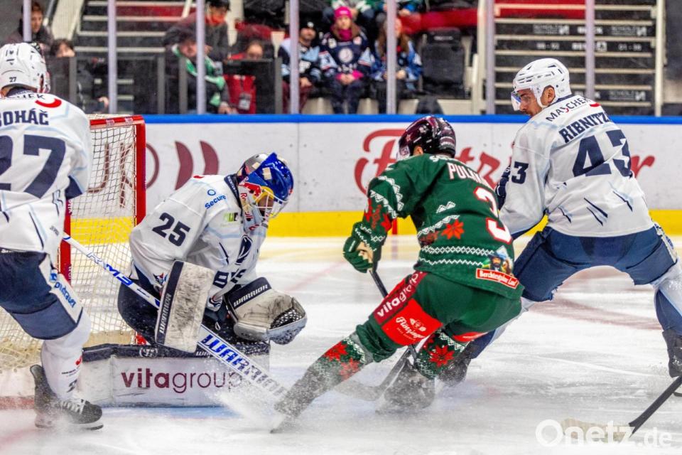 Von den massiven Personalsorgen der Weidener war im ersten Drittel kaum etwas zu sehen. Die neu formierten Blue Devils begegneten dem Gastgeber und Tabellendritten Rosenheim in einer zerfahrenen Partie auf Augenhöhe. Torchancen blieben zunächst auf beiden Seiten rar, das Wenige vor dem Weidener Tor entschärfte Simon Wolf, der diesmal den Vorzug vor Felix Noack erhielt, souverän. Mit zunehmender Spielzeit übernahmen die Devils mehr Kontrolle und erspielten sich gute Möglichkeiten. Die beste nutzte Luca Gläser in der 16. Minute nach einem Alleingang, vorbereitet von Bohac und Neuzugang Voyer. Kurz darauf verpasste der Weidener Goldhelm das 2:0 nur haarscharf. Mit der knappen Führung ging es in die erste Drittelpause.