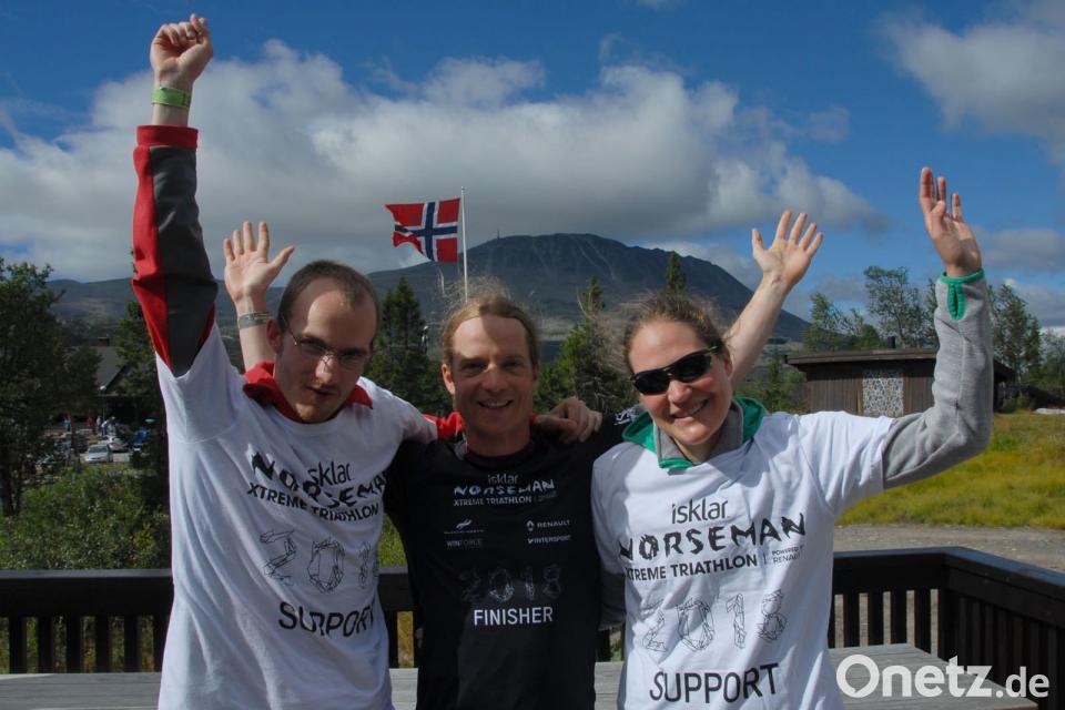 Jeder Starter beim "Norseman" muss ein Supporter-Team mitbringen, das ihn verpflegt, für die Ausrüstung (zum Beispiel Wechselkleidung, Verpflegung) zuständig ist und ihn auf dem schwierigen Berganstieg auf den 1883 Meter hohen Gaustastoppen begleitet. Diese Aufgabe meisterten souverän Freundin Saskia und Bruder Lorenz.