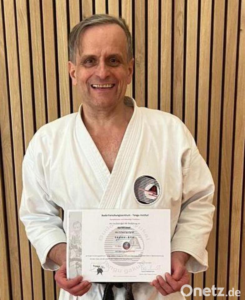 Das Karate-Centrum-Dojo-Weiden freut sich über einen Erfolg eines seiner Sportler. Nach monatelangem und intensivem Training legte Josef Reiter in Straßburg (Frankreich) die Prüfung zum 3. Dan Karate erfolgreich ab. Trotz einer körperlichen Behinderung meisterte er alle Anforderungen der umfangreichen Prüfung. Nach der theoretischen Prüfung folgten die Grundschule (Kihon) und vier Kata-Formen. Nächster Prüfungsteil waren Bunkai (Anwendung der Kata-Techniken), danach folgten verschiedene Partnerformen. Unterstützt von seinem Trainings-Partner Roland Paulus war das Ganze nach fast drei Stunden endlich geschafft. Die hochrangig besetzte Prüfungskommission mit Roland Habersetzer 9. Dan an der Spitze bescheinigte dem Prüfling anschließend gute Leistungen.