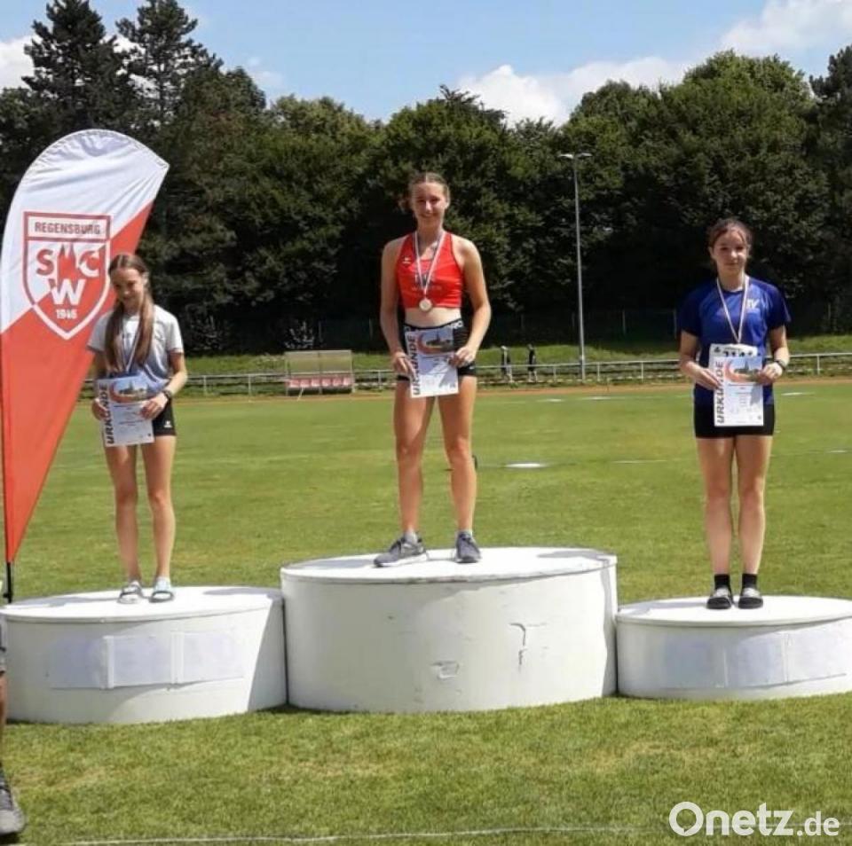 Leichtathletin Lilli Werner (DJK Weiden) nahm am vergangenen Wochenende an der Oberpfalzmeisterschaften im Vier- und Siebenkampf in Regensburg teil. Am Samstag gewann sie mit 1984 Punkten wie schon im Vorjahr den Vierkampf, bestehend aus 100-Meter-Lauf, Weit-, Hochsprung und Kugelstoßen. Nach einem durchwachsenen Auftakt beim Kugelstoßen erzielte sie mit 4,88 m eine persönliche Bestleistung im Weitsprung und auch im Hochsprung spielte sie mit übersprungenen 1,60 m ihre Stärke aus. Beim abschließenden 100-m-Lauf blieb sie mit 13,87 Sekunden knapp unter ihrer Bestleistung.