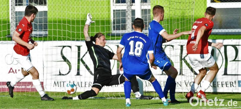 Unzulänglichkeiten gab es schon zu Beginn. Zunächst war die Weidener Hintermannschaft nicht sortiert, einmal rettete SpVgg-SV-Keeper Fabian Scharnagl exzellent. Dann patzten die Chamer zwei Mal – ohne Nutzen für die Gastgeber. Die hätte Kapitän Stefan Graf Mitte der ersten Hälfte in Führung bringen können, er schoss allerdings knapp drüber. Am langen Pfosten vorbei segelte der Ball nach einem Schuss von Michael Jonczy. Der wuchtige Stürmer hatte in der ersten Hälfte die ein oder andere gute Aktion, tauchte aber in Hälfte zwei immer mehr ab.
