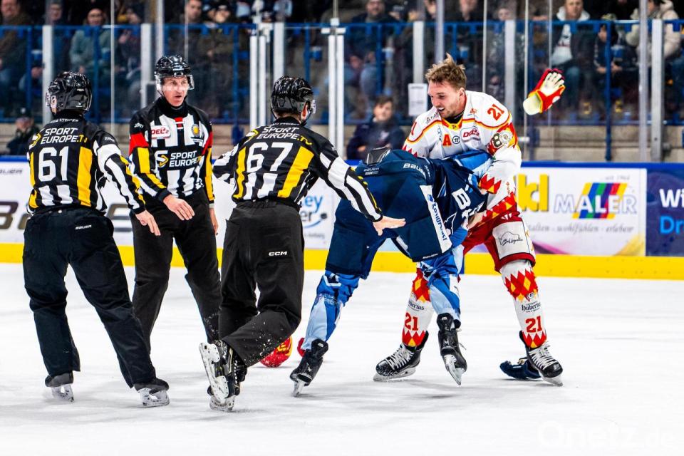 Ebenso diskutiert wird die Szene, die am Sonntag im zweiten Drittel für die emotionalste Reaktion des Abends sorgte: der Faustkampf von Neal Samanski, der seinen jüngeren Bruder Noah verteidigte. Die Frage, die sich daraus ergibt und im Podcast ausführlich besprochen wird: Fehlt den Blue Devils in der DEL2 ein spielerischer „Polizist“ – ein Enforcer, wie man früher gesagt hätte? Das Modell wirkt im modernen Eishockey zwar aus der Zeit gefallen, aber die jüngsten Wochen haben gezeigt, dass die Weidener immer wieder harte Aktionen gegen sich hinnehmen müssen.