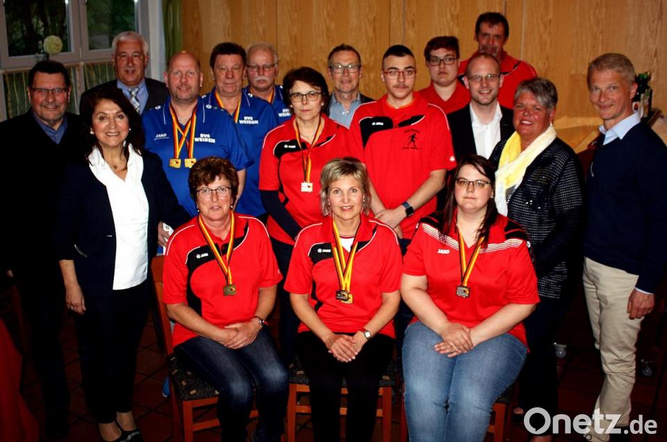 Als ausrichtender Landesverband hat der Behindertensportverband Bayern den Behinderten- und Vitalsportverein (BVS) Weiden um die Ausrichtung der siebten deutschen Meisterschaft im Bowling gebeten. Vorsitzende Sabine Birner organisierte mir ihrem Team in der Bowling-Welt das große Event. Bei der Siegerehrung strahlten die Weidener Starter und waren mit ihren Spielen sehr zufrieden. Insgesamt reisten 13 Mannschaften aus den Landesverbänden an. Turnierleiter Karl-Heinz Schmid aus Sondershausen zeichnete verantwortlich und teilte die Einzelstarts und Mannschaften ein. Dazu überprüfte er auch die Handicap-Systeme der Starter und gab die Spielregeln bekannt. Oberbürgermeister Kurt Seggewiß hieß die Gäste in der Max-Reger-Stadt herzlich willkommen. Nach der Auswertung der Ergebnisse fand die Siegerehrung im Schützenhaus statt.