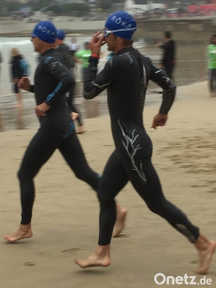 Lothar Richthammer war nach längerer Verletzung gerade wieder fit geworden. Das war aber nicht der Grund, dass er als letzter Oberpfälzer den 19 Grad kalten Indischen Ozean verließ. Schwimmen ist seit jeher seine Schwäche, mit einer Zeit von 35 Minuten für die 1,9 Kilometer war Richthammer sehr zufrieden. Damit lag er lediglich gut drei Minuten hinter Polert und anderthalb hinter Bydkieski. Der starke Schwimmer Sven Pollert war nach weniger als 27 Minuten zurück am Strand der Bucht.