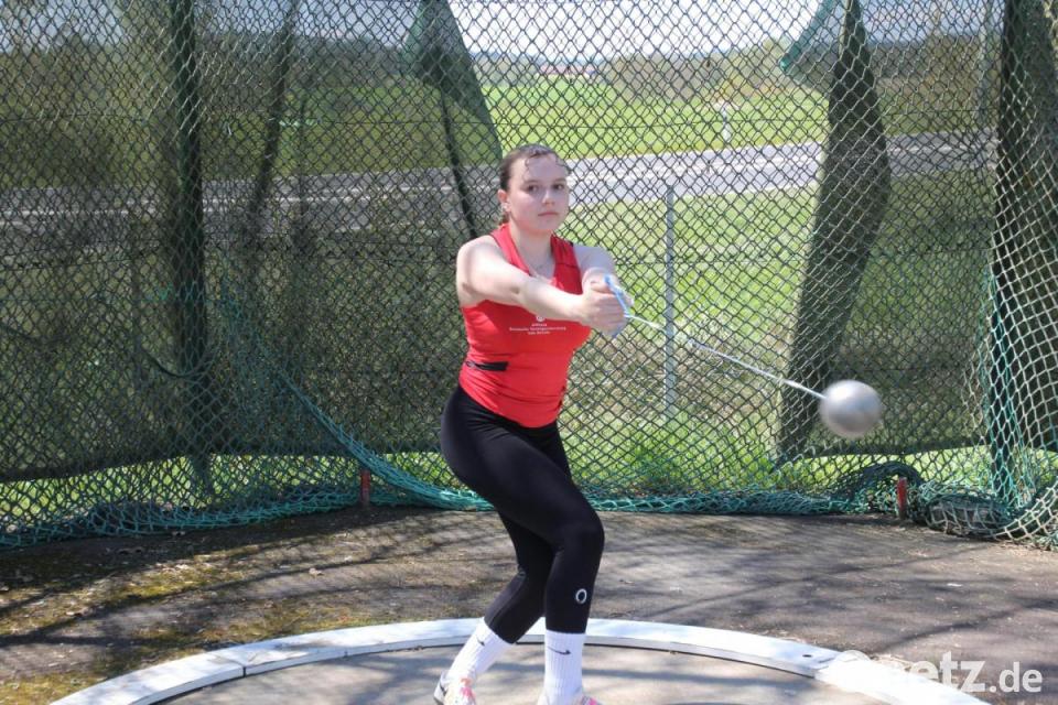 Obwohl Ricarda Baum (TB Jahn Wiesau) in den letzten Wochen wegen einer Verletzung kaum trainieren konnte, nahm sie am vergangenen Wochenende an den süddeutschen Meisterschaften in Walldorf (Baden-Württemberg) teil. Sie ging sogar als eine der Mitfavoritinnen in der Altersklasse U18 an den Start. Lange Zeit lag Ricarda Baum auf dem zweiten Platz, ehe sich im letzten Durchgang noch zwei Hammerwerferinnen an ihr vorschoben. Doch Baum konnte sich in ihrem letzten Wurf ebenfalls noch einmal steigern und gewann letztlich mit 50,28 Meter die Bronzemedaille. Den Wettbewerb gewann Leni Sommerlade (ESV Jahn Treysa), die gleich im ersten Versuch den Hammer auf 51,65 Meter wuchtete. Zweite wurde Annalisa Körner (LAG Obere Murg/51,30).