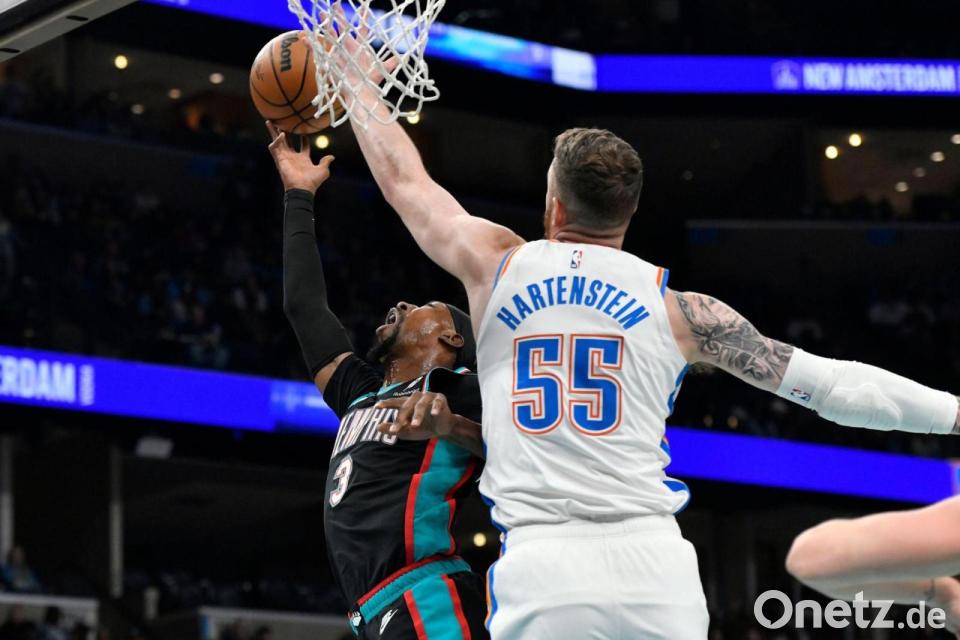 Die Oklahoma City Thunder haben ihren Ruf als bestes Team der NBA gefestigt und auch das Auswärtsspiel bei den Memphis Grizzlies gewonnen. Beim 114:100 überzeugte der deutsche Center Isaiah Hartenstein mit 18 Punkten und 13 Rebounds. Hinzu kamen zwei Vorlagen und ein Block für den 27-Jährigen aus Quakenbrück. Für den Titelverteidiger war es der zehnte Sieg im elften Spiel der Saison - kein anderes Team hat auch nur annähernd eine so gute Bilanz.