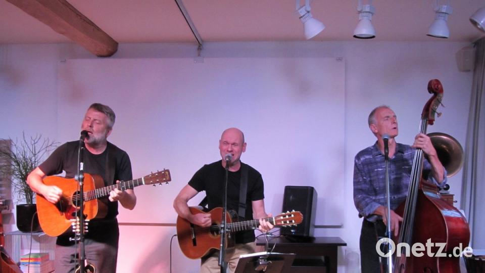 Freihung. Nach einem Gastspiel vor drei Jahren kehren Rainer Hasinger, Robert Hasleder und Andreas Kessel mit Gitarren, Akkordeon, Kontrabass, Mundharmonika und Trommel zurück, um das idyllische Fleckchen Oberpfalz erneut mit italienischem Flair anzureichern. Allerdings nicht ganz so ungeschminkt, wie es Hausherr Günter Preuß zu Beginn versprochen hat: Die "gesalzenen Drei" - wie die Band auf Deutsch heißt - haben ziemlich viel Technik mit im Gepäck.