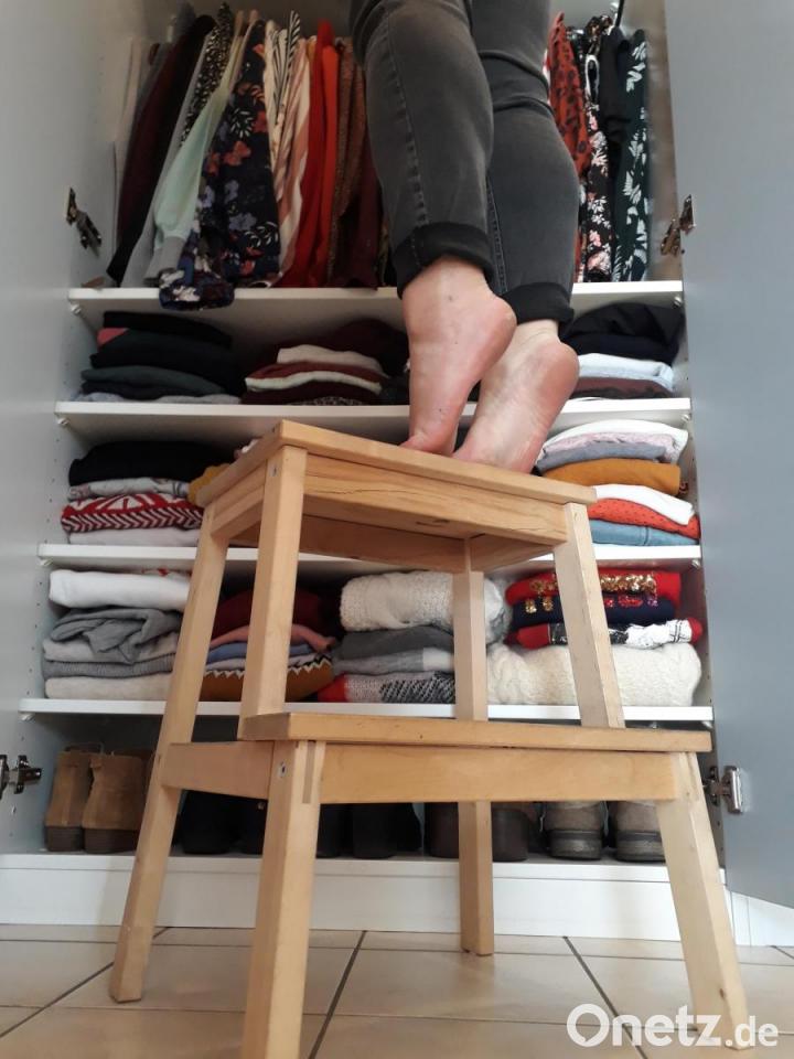 Bis heute gehe ich furchtbar schnell verloren. Wo ich früher als Kind hinter großen Warenregalen im Supermarkt verloren ging, sind es als Erwachsene Menschenmassen auf Konzerten oder im Theater, in denen ich untergehe. "Ohje, du Arme. Kannst du überhaupt etwas sehen?" Nein. Auch auf Partys hab ich es nicht einfach. Meistens ist der Bartresen so hoch, dass ich nicht drüber gucken, geschweige denn bestellen kann. Um ans Müsli im obersten Hängeschrank zu kommen, muss ich hüpfen. Nicht umsonst stehen in meiner Wohnung überall Tritthocker. In vielen Badezimmern hängen die Spiegel zu hoch für mich. Ich sehe nur meinen Scheitel.