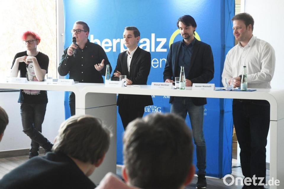 Haben junge Politiker jungen Menschen etwas zu sagen? In welchem Verhältnis stehen beide zueinander? Genau das wollte das OTon-Team wissen und hat Schülergruppen vom Weidener Augustinus- und vom Amberger Max-Reger-Gymnasium eingeladen, sich mit jungen Politikern aus der Region bei einer Podiumsdiskussion auszutauschen. Zwei große Politikfelder sind es demnach, die die jungen Menschen in der Region derzeit besonders beschäftigen: Zum einen die Bildungspolitik und zum anderen das Thema Umwelt. Die Veranstaltung selbst war auf drei Themenkomplexe aufgeteilt: Was kann passieren, damit auch junge Menschen einen Grund haben, in der Oberpfalz zu bleiben?; Was kann die Kommunalpolitik tun, um für mehr Umweltschutz zu sorgen? Und: Ist die Umsetzung von Weiden-West IV überhaupt noch zeitgemäß? Insgesamt zwei Stunden stellten sich Henner Wasmuth (Junge Union, Amberg-Sulzbach), Manuel Werthner (Freie Wähler, Amberg), Sascha Anton (Junge Liberale, Weiden) sowie Noah Pawlica (SPD, Sulzbach-Rosenberg) und Elli Wolf (Grüne, Sulzbach- Rosenberg) den Fragen der Schüler. Besonderes Interesse hatten die jungen Erwachsenen an den Standpunkten Henner Wasmuths und Sascha Antons, wenn es darum ging, was die Politiker denn vorschlagen würden, um wirtschaftliche Interessen mit Umweltschutz zu vereinen. Wir haben einige der Fragen und Antworten gesammelt.