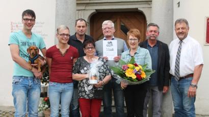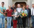 Bürgermeister Johann Maurer (rechts) war sicher: "Wenn es Ihnen bei uns nicht gefallen würde, kämen Sie sicher nicht so oft." Und das ist bei Hermann Warneke aus Schneverdingen (Vierter von rechts) seit 20 Jahren der Fall. Mit Familienangehörigen und Bekannten reist er …