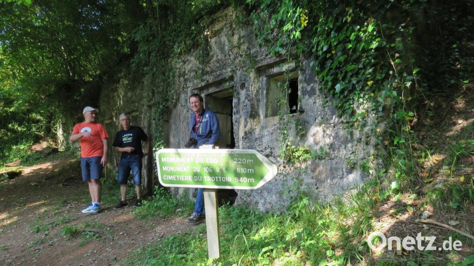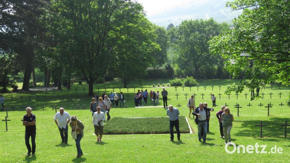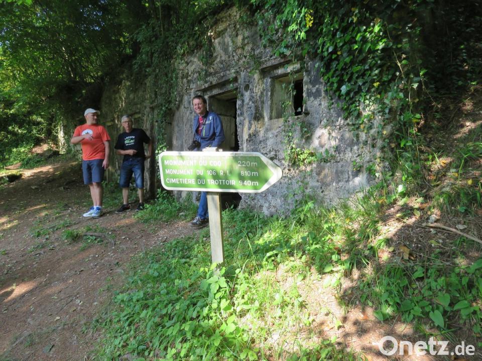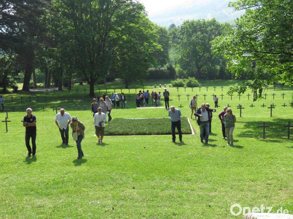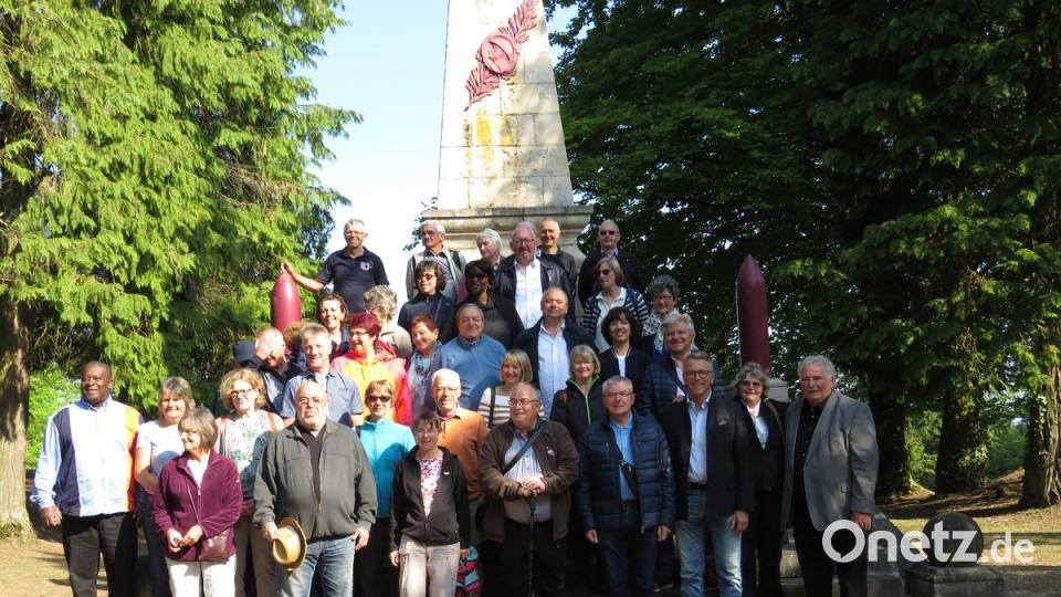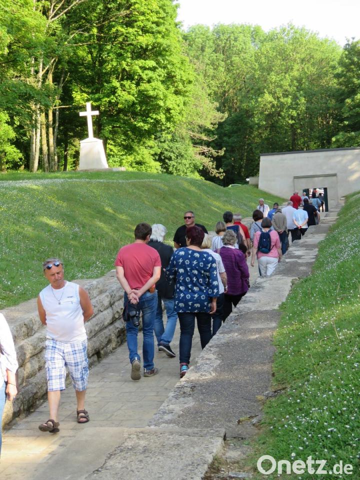 Das Reiseprogramm wird immer spannender: Erstaunt erlebt die Gruppe am Sonntag in Bombenkratern sowie auf den Soldatenfriedhöfen sonderbar-einfühlsame Orte der Stille als jene Schauplätzen, die vor hundert Jahren von Hass, Tod, Leid und Gewalt getränkt waren. Die Natur hat sich die Schlachtfelder von Verdun und „Les Eparges“ zurückerobert, in den Gräben wachsen Bäume. Auf dem deutschen Soldatenfriedhof in Viéville-sous-les-côtes legen Franz Stahl und Jean-Pierre Meur Blumen nieder. Peter Gold hat die Gitarre dabei, alle singen das Friedensliedes „Sag‘ mir, wo die Blumen sind“. Die Bürgermeister fallen sich in die Arme, hier hat Freundschaft eine besondere Bedeutung. „Das geht ziemlich ans Gemüt, was in Verdun geschehen ist“. So und ähnlich lauten die Kommentare der Reiseteilnehmer zu diesem Abstecher in die Geschichte des 1. Weltkrieges.