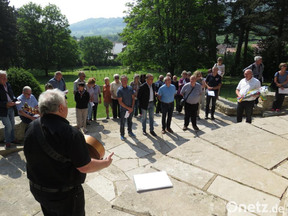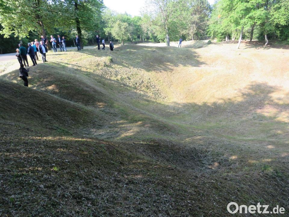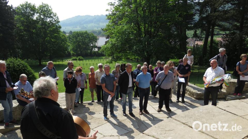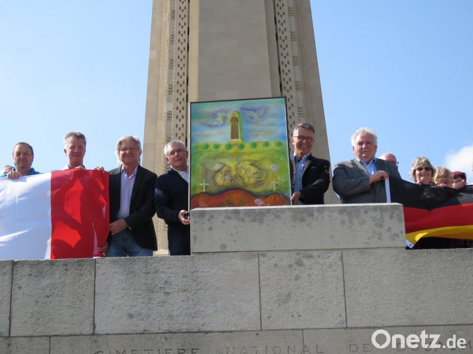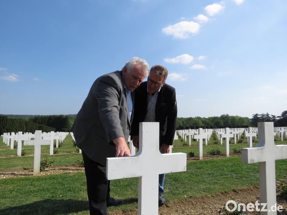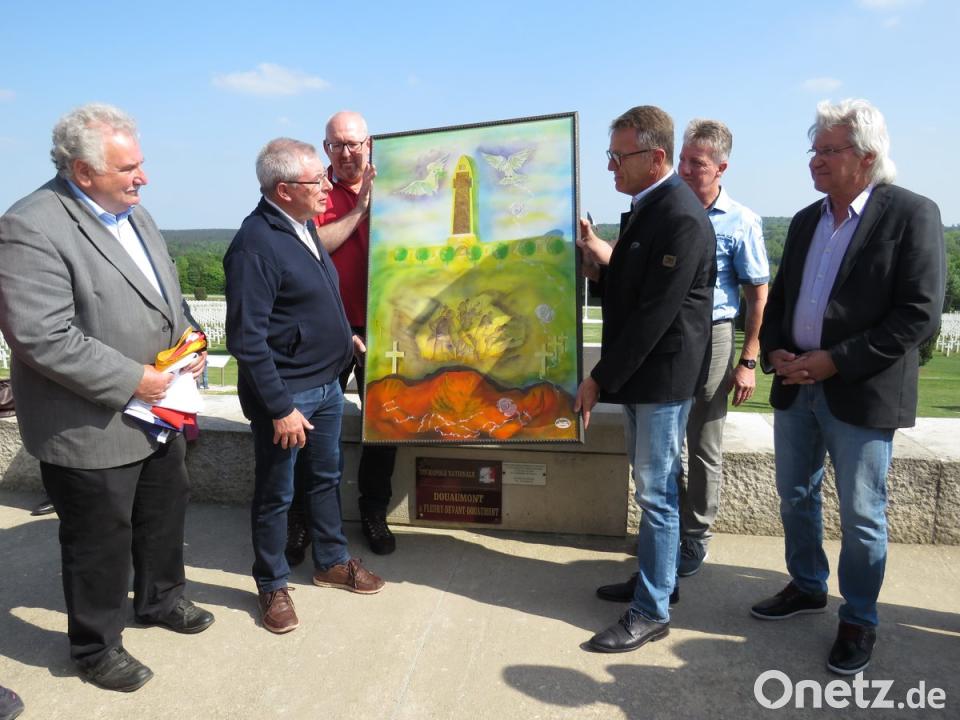 Das Reiseprogramm wird immer spannender: Erstaunt erlebt die Gruppe am Sonntag in Bombenkratern sowie auf den Soldatenfriedhöfen sonderbar-einfühlsame Orte der Stille als jene Schauplätzen, die vor hundert Jahren von Hass, Tod, Leid und Gewalt getränkt waren. Die Natur hat sich die Schlachtfelder von Verdun und „Les Eparges“ zurückerobert, in den Gräben wachsen Bäume. Auf dem deutschen Soldatenfriedhof in Viéville-sous-les-côtes legen Franz Stahl und Jean-Pierre Meur Blumen nieder. Peter Gold hat die Gitarre dabei, alle singen das Friedensliedes „Sag‘ mir, wo die Blumen sind“. Die Bürgermeister fallen sich in die Arme, hier hat Freundschaft eine besondere Bedeutung. „Das geht ziemlich ans Gemüt, was in Verdun geschehen ist“. So und ähnlich lauten die Kommentare der Reiseteilnehmer zu diesem Abstecher in die Geschichte des 1. Weltkrieges.