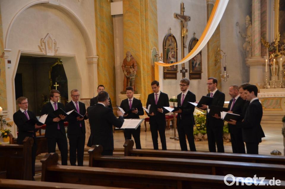 Immerhin waren es ehemalige Domspatzen, die die Besucher mit anspruchsvollen Liedbeiträgen beschenkten. "Maria ist in unserer katholischen Tradition neben Jesus Christus im Mittelpunkt unserer Verehrung", brachte es Dekan Alexander Hösl in seiner Begrüßung auf den Punkt. Es gebe nicht viele biblische Stellen, in denen Maria vorkomme. In jenen im Neuen Testament stehe jedoch nicht ihre Person im Vordergrund, sondern sie verweise stets auf ihre Gottesbeziehung und auf Jesus. Stadtpfarrer Hösl freute sich über den Besuch der zwölf Vokalisten, die wieder eine sorgsame Auswahl an Marienliedern getroffen hatten. Der Lobpreis Marias beginne immer mit dem Lobpreis des dreifaltigen Gottes.