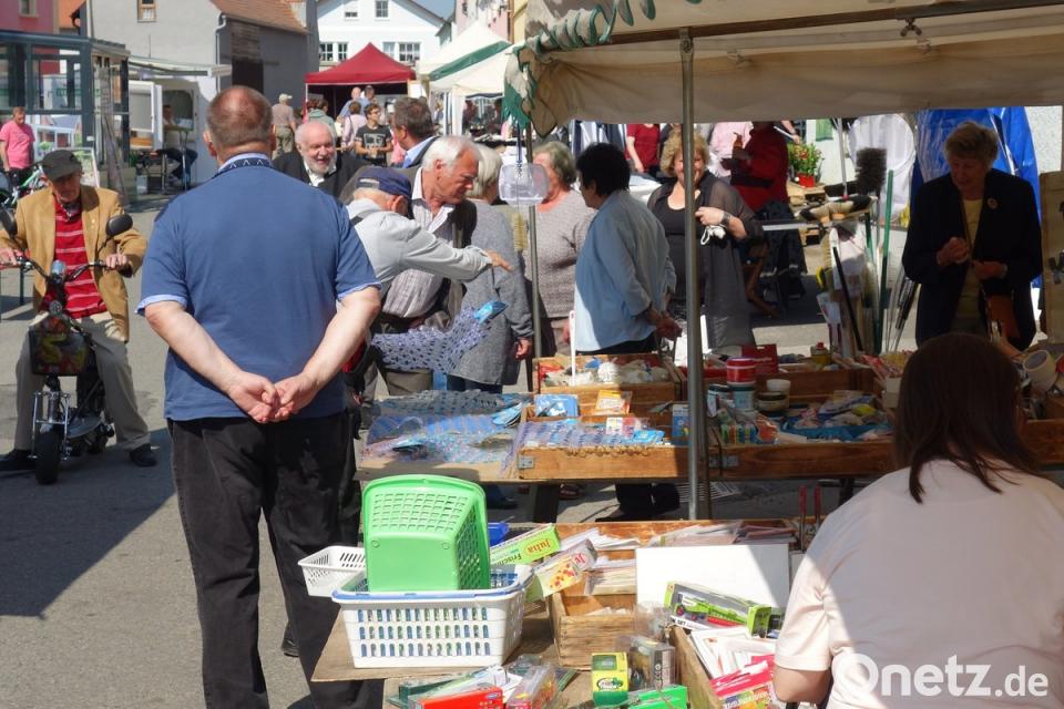 Eine reichhaltige Produktpalette versüßte den kurzen Halt, mit dem sich ein Imbiss oder der Genuss einer besonderen Spezialität verbinden ließ. Darüber hinaus zog es auch die Einheimischen auf dem nördlichen Marktplatz. Der Auftakt gehörte den Kirchenbesuchern, die nach dem Gottesdienst rechtzeitig auf der Matte standen. Die ersten Runden durch die Marktbuden umrahmte wenig später das Standkonzert des "Großen Vereinsorchesters" unter Leitung von Hermann Mack.