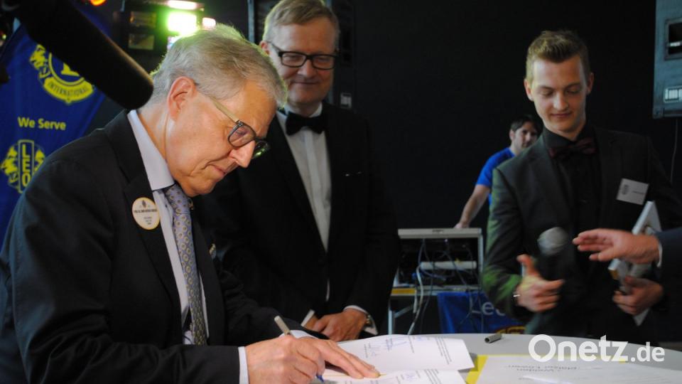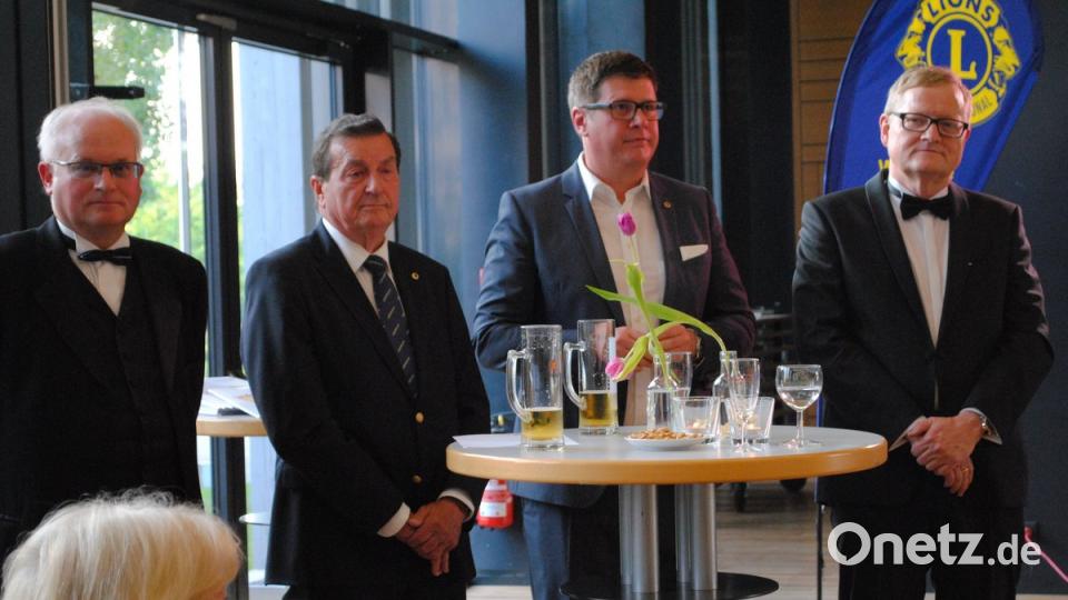 Der Präsident des Lions-Clubs Tirschenreuth, Franz Göhl, versprach als Einstandsgeschenk, den Weidener Leos an einem Tag im Dezember den Glühweinstand beim Tirschenreuther Christkindlmarkt zu überlassen. Dort könnten sie Spenden sammeln, was in diesem Fall eine "g'mahte Wiesn" sei.