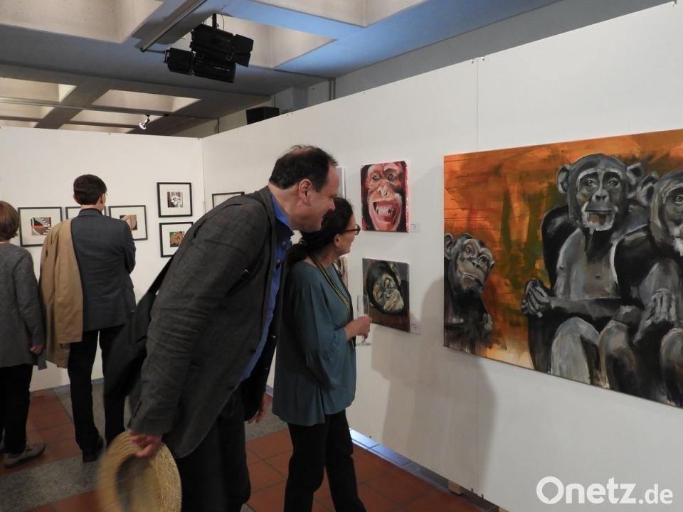 Dass der OKV auch künstlerisch bestens aufgestellt ist, beweisen die rund 130 Werke der 52 Mitglieder. Ob Malerei, Grafik, Fotografie oder Objekt, das Niveau ist durchgehend hoch. Auch thematisch ist viel geboten. Florales trifft auf Abstraktes. Landschaften und Stadtansichten hängen neben figürlichen Szenen. Und dazwischen nehmen Affen den Betrachter ins Visier. "Jedes Mitglied ergänzt mit seiner ganz eigenen Geschmacksvariante das künstlerische Menü", lobte die Vorsitzende die Werke der heimischen Künstler.