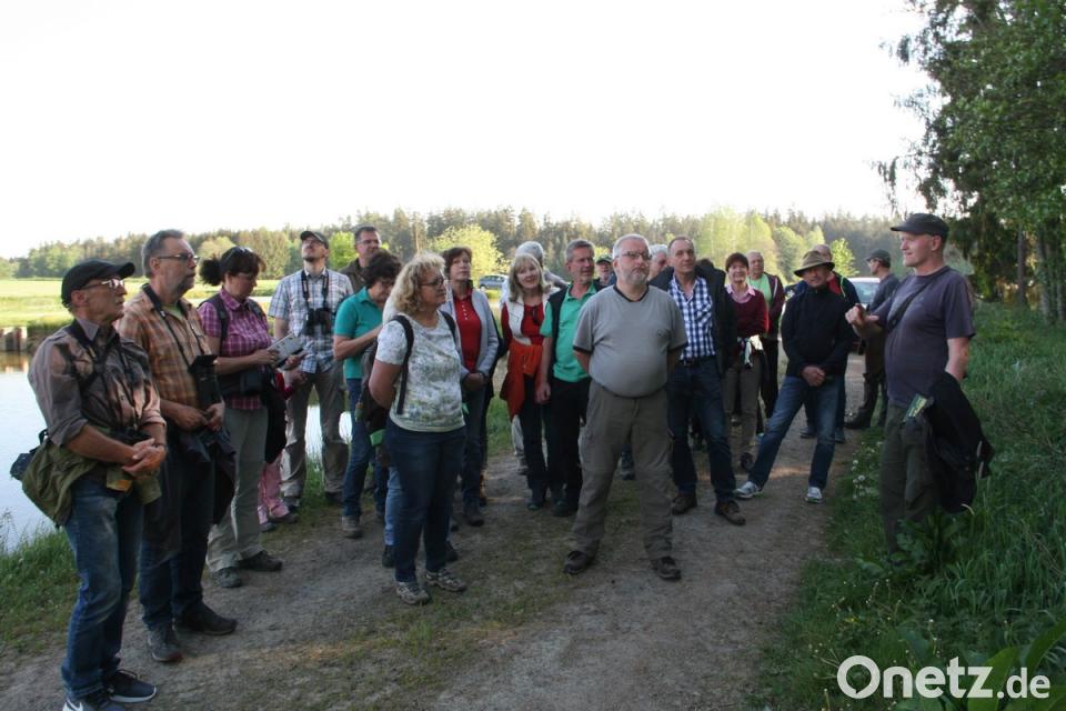 Der Naturpark hatte die Landschaft um Muckenthal gezielt ausgesucht. Der nahezu unberührte und vom Tourismus verschont gebliebene Geheimtipp entlang der Fichten und Erlen ist ein Eldorado für Naturliebhaber und für diejenigen, die auf der Suche nach Ruhe und Erholung sind. Im Mai seien die gefiederten Sänger am eifrigsten, viele Schilfbewohner, auch der Teichrohrsänger sei bereits eingetroffen, erklärte Möhrlein, der auch immer wieder innehielt, um gespannt zuzuhören. Regelmäßig brüten in Schilfzonen auch Rohrweihefamilien, die (für den, der ein Fernglas mitgenommen hatte) gut zu beobachten waren. Reichlich Nahrung fänden auch die derzeit dort brütenden Schwarzstörche, verwies der Naturführer während der rund zweistündigen Wanderung auch auf diese Besonderheit.