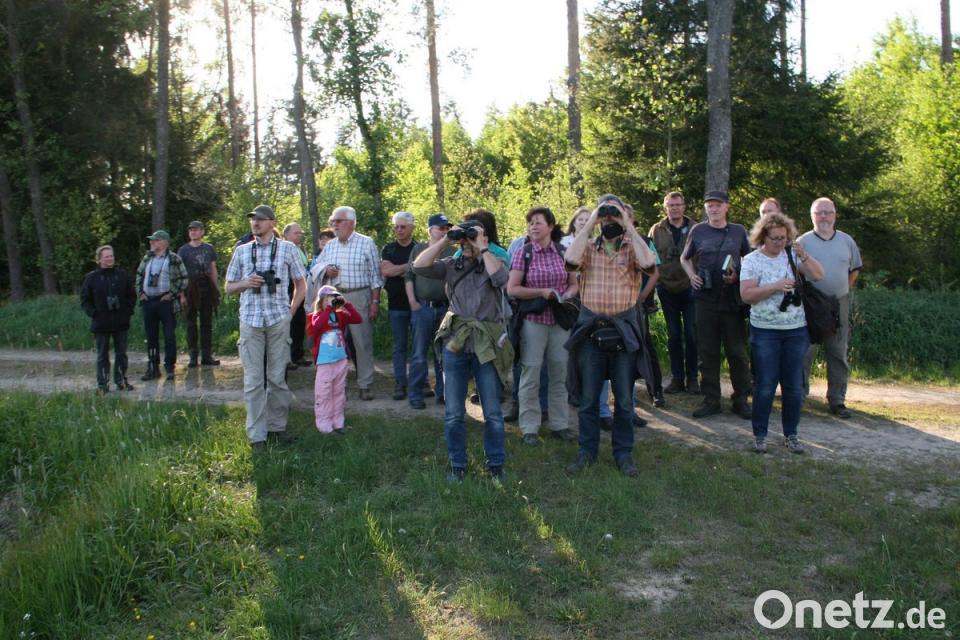 Gemeinsam konnte man die allgegenwärtige Amsel, immer wieder auch die Singdrossel lokalisieren. Möhrlein erklärte die Unterschiede beim Zirpen der einzelnen Meisenarten. Gemeinsam lauschte man dem Buchfinkenschlag. In den Baumkronen erspähte man den einen oder anderen Abendsänger.