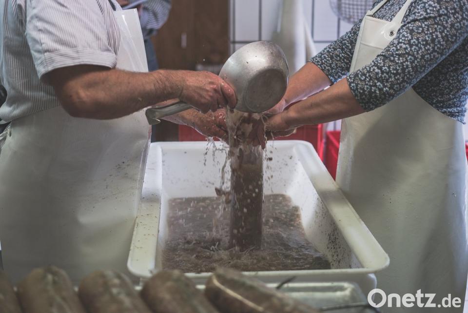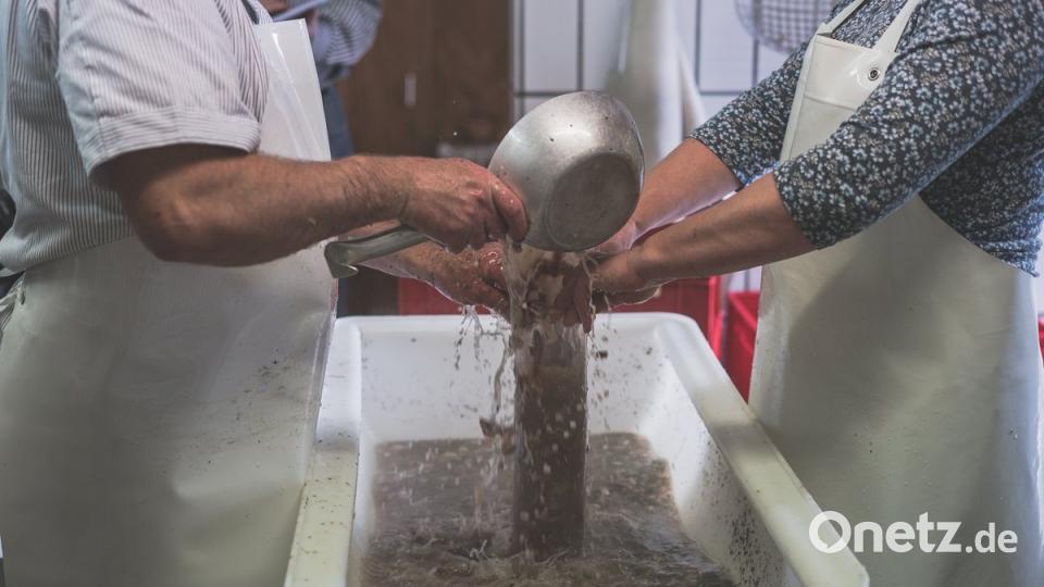 Dann ist die würzige Wurstbrühe längst als Teil des Presssacks in Plastikdärme oder Eimer abgefüllt, um im Sauerkraut oder zum Kesselfleisch mit auf den Teller zu kommen. "Wir schauen den Leuten ins Gesicht beim Zoigl. Da musst du gute Ware haben", begründet Matthias, der im Hauptberuf in Wurz als Metzgergeselle angestellt ist, mit Schweiß auf der Stirn das Motiv für das Engagement zu Hause. Einmal habe man krankheitsbedingt nicht gewurstet, erinnert sich Renate "Das ist entspannter. Aber eben nicht deins." Für sie ist der Mittwoch der schönste Tag für den Zoigl. Ihr macht es Spaß, Hand in Hand und ohne viele Worte mit Ehemann Matthias zusammenzuarbeiten.