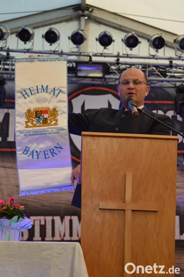 Für den neuen Finanz- und Heimatminister Albert Füracker bot das volle Zelt dann auch eine schöne Kulisse für seine kurzweilige Ansprache. Bei dieser setzte er das Ehrenamt in den Feuerwehren in den Mittelpunkt und bezeichnete die Ortswehren als "Elite im ländlichen Raum". Und er war erstaunt, dass im 130 Einwohner zählenden Dorf Haag ganze 88 Personen Mitglied bei der Feuerwehr sind und es sogar eine Jugendgruppe gibt. "Ihr rettet, schützt, löscht und helft - und dass an 365 Tagen im Jahr. Dafür gebührt euch großer Respekt", so der Minister. Er lobte auch den Nachwuchs, der im Verein "fürs Leben lerne und Gemeinschaftssinn entwickle." Außerdem sei in dieser Zeit der Vereinstätigkeit der Computer und der Fernseher ausgeschaltet. Respekt zollte er den 160 Feuerwehren, die der Landkreis Schwandorf zählt. Seiner Meinung nach funktioniere das Dorfleben ohne die Feuerwehr nicht mehr. Denn Vereine sorgen für ein gesundes Miteinander im Ort. "Politiker können die Feuerwehren zwar fördern, aber die Arbeit muss an der Basis gemacht werden", betonte der Gast. Er dankte allen Kameraden, die bereit sind zu üben und zu den Einsätzen zu fahren.
