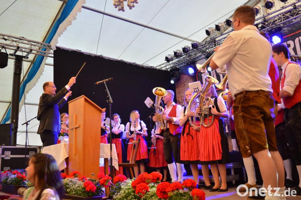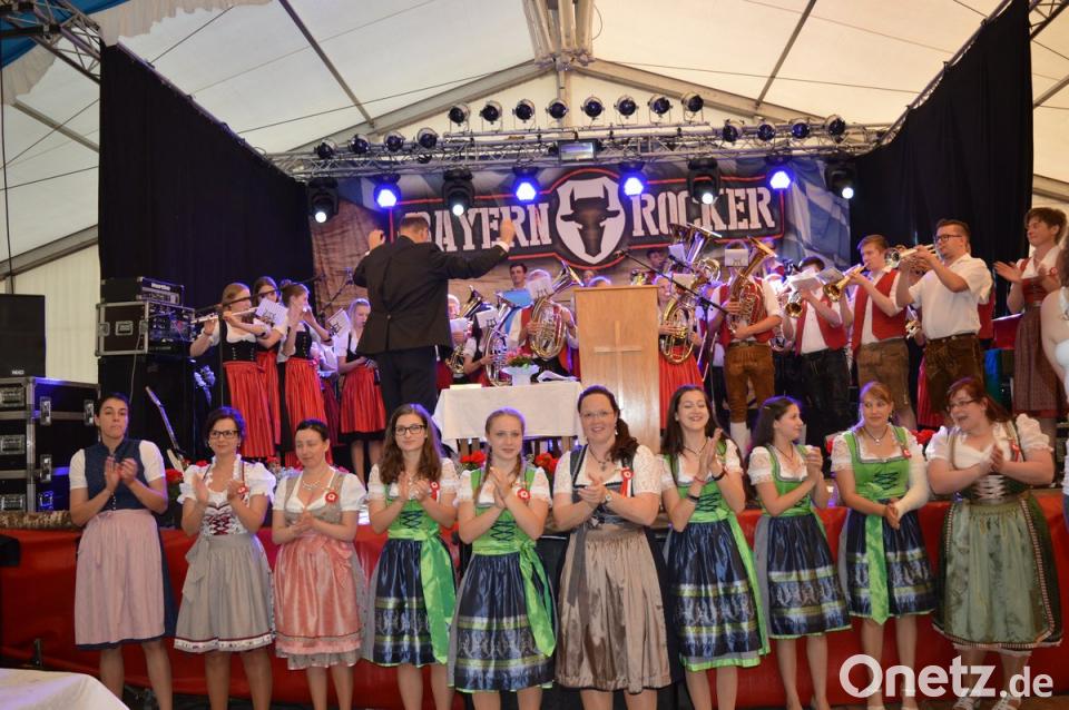 -Haag. Säumten schon beim Zug durchs Dorf viele Zuschauer die Straßen, so füllte sich auch das Zelt am frühen Abend in Windeseile. Die Festdamen zeigten beim "Böhmischen Traum" der Blaskapelle Weiding sogleich, dass sie die Stimmung bis zum Pfingstmontag hochhalten werden.